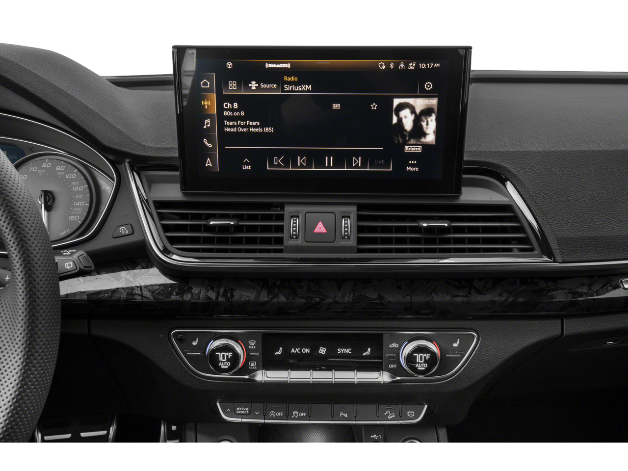 - Radio: AM/FM Stereo -inc: Audi sound system, MMI touch display w/10.1" center screen, preparation for mobile phone (Bluetooth) and Audi smartphone interface w/wireless Apple CarPlay